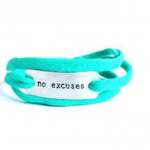Jouw tekst wordt handmatig in het plaatje geslagen, waarna dit wordt bevestigd aan een zacht rekbaar bandje. Daarna doe je je armband om pols of enkel en maakt 'm vast met een knoopje. Omdat het materiaal rekbaar is, hoef je het knopje niet meer los te maken.